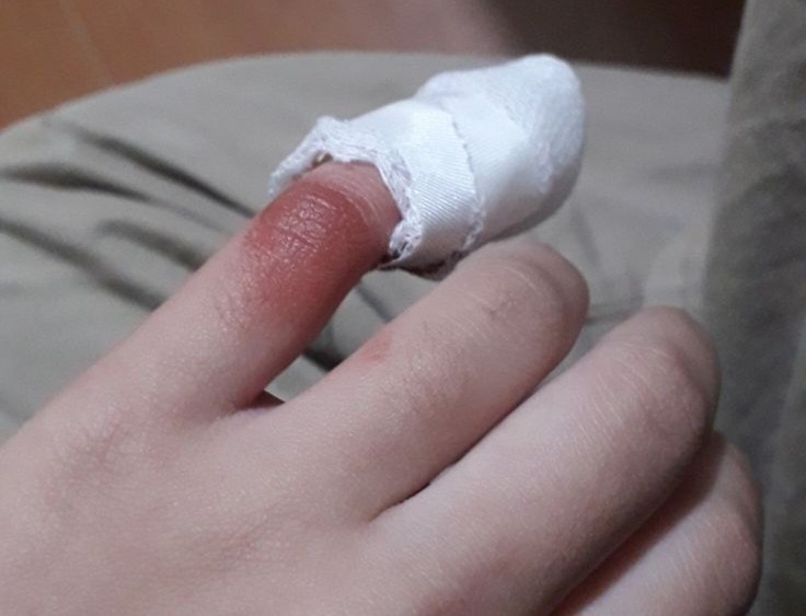Aku mengucapkan terima kasih saat rasa perih menghilang bersama bebatan nyaman yang membalut jariku.