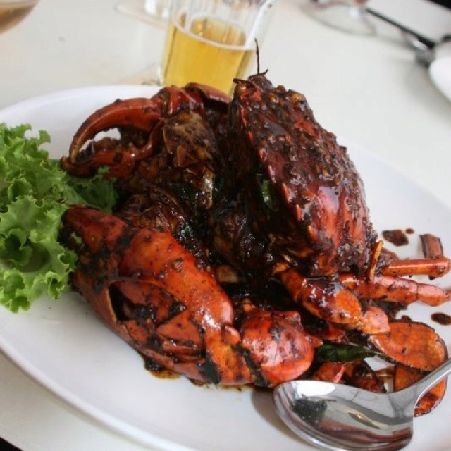 Cangkang merah-oranye gelap tertutup lapisan saus yang kental, pekat, dan berkilau. Ini adalah favoritku.